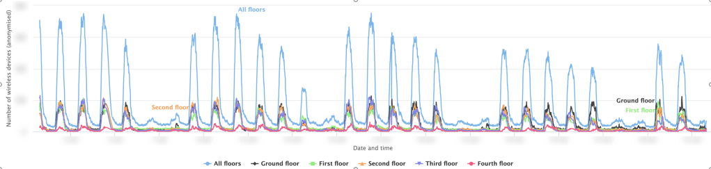 Most research in communication networks are quite fundamental such as sending data frame from point A to point B as quickly as possible with little loss on the way. Some networking research can also benefit communities indirectly. I recently started a new collaboration with our University IT department on a smart campus project where we use anonymised data sampled from a range of on-campus services for service improvement and automation with the help of information visualisation and data analytics. The first stage of the project is very much focused on the “intent-based” networking infrastructure by Cisco on Waterside campus. The SoTA system provides us with a central console and APIs to manage all network switches and 1000+ wireless APs. Systematically studying how user devices are connected to our APs can help us, in a non-intrusive fashion, better understand the way(s) our campus are used, and use that intelligence to improve our campus services. Although it’s possible to correlate data from various university information systems to infer ownership of devices connected to our wireless networks, my research does not make use of any data related user identity at this stage. Not only because it is unnecessary (we are only interested in how people use the campus as a whole), but also because how privacy and data protection rules are implemented. This is not to say that we’ll avoid any research on individual user behaviours. There are many use cases around timetabling, bus services, personal wellbeing and safety that will require volunteers to sign up to participate.