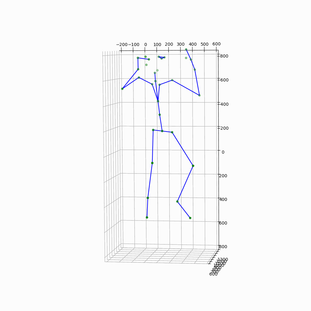 The system can be used for motion capturing using the Kinect’s Body Tracking SDK. With 32 tracked joints, human activities and social behaviour can be analysed. The following two demos show two scenes that I created based on live tracking of human activities. The first one shows two children playing. The blue child tickles the red child while the red child holds her arms together, turns her body and moves away. The second scene is an adult doing pull-ups. The triangle on the subject’s face marks their eyes and nose. The two isolated marker points near the eyes are the ears.